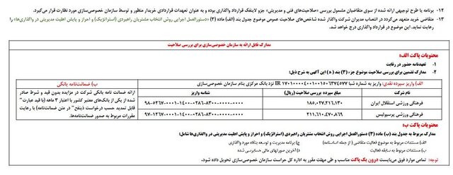 سازمان خصوصی سازی با صدور اطلاعیهای جزئیات واگذاری ۵۱ درصد سهام دو باشگاه فرهنگی و ورزشی پرسپولیس و استقلال را اعلام کرد.