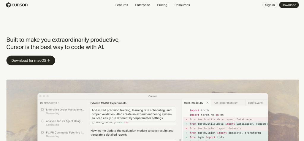 اما Cursor داستان متفاوتی دارد. این نرم‌افزار یک انشعاب (Fork) مستقیم از VS Code است. سازندگان Cursor، هسته قدرتمند VS Code را برداشته و هوش مصنوعی را با تار و پود آن ادغام کرده‌اند. نتیجه؟ ابزاری که نه تنها کد شما را می‌فهمد، بلکه محیط ترمینال، فایل‌های پروژه و حتی ساختار فولدرهای شما را درک می‌کند. برای یک برنامه‌نویس، این یعنی داشتن یک دستیار ارشد که ۲۴ ساعته در کنار دستش نشسته است.