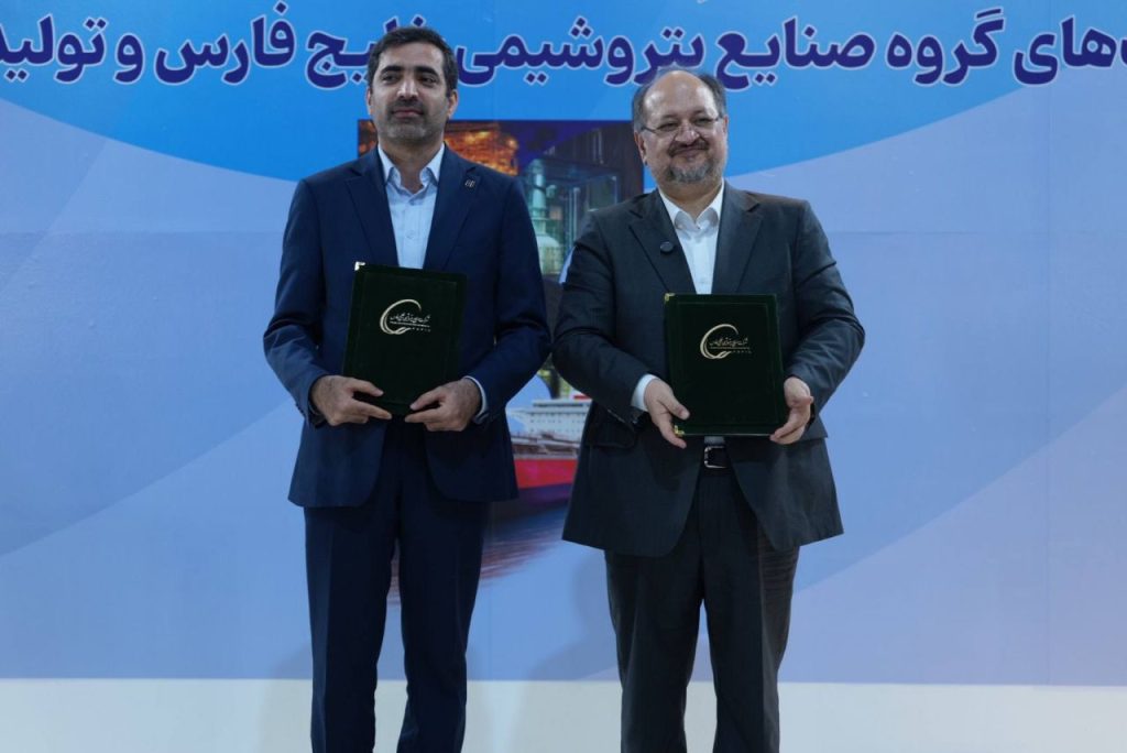 مراسم امضای تفاهمنامه در دومین روز از نمایشگاه بینالمللی ایران پتروکم با حضور محمد شریعتمداری، مدیرعامل هلدینگ خلیج فارس و یاسر مرادی، عضو هیأتمدیره بانک صادرات ایران برگزار شد.